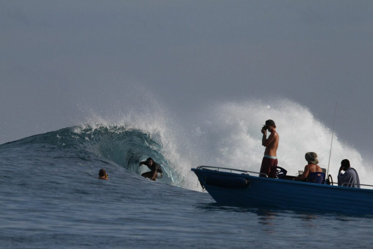 Mais le bateau voit aussi défiler de temps en temps quelques surfeurs pros, dont les Français Sancho, Miky Picon & Co (leur dernier trip sur place début juillet avec Mateia Hiquily, les cousins Mignot & Co est d’ailleurs à retrouver dans le Surf Session de septembre, actuellement en kiosque).