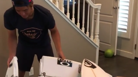 « J’ai pu récupérer mon boardbag après que celui-ci ait été perdu pendant une semaine » a précisé dans un premier temps Kanoa. « Quel type de supporter en colère m’a cassé mes planches à l’aéroport ? » a t-il poursuivi. « La dernière fois que j’ai laissé mon boardbag c’était avec Air Portugal mais ils ne l’ont jamais chargé dans l’avion parce que j’ai décollé de la Russie le lendemain de la finale » a t-il précisé aux journalistes de chez Stab. « Je n’en veux pas à la compagnie aérienne mais plus à l’aéroport ». Les planches devaient être envoyées chez lui en Californie pendant son absence.