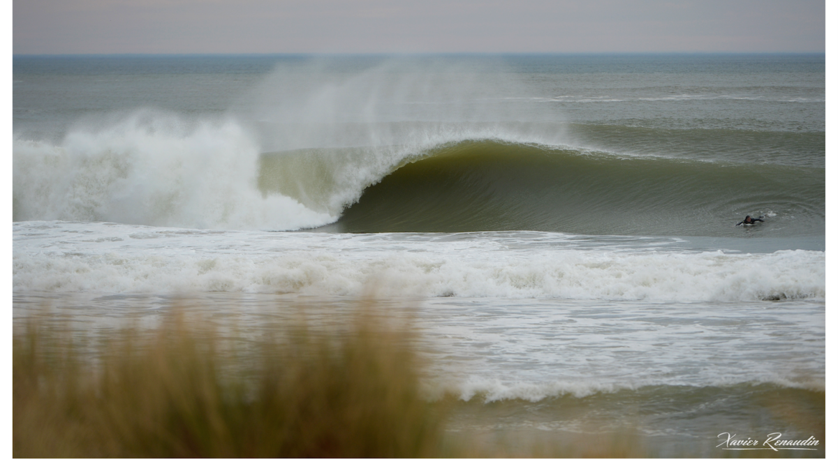 X.R – « Les conditions se sont un peu trompées toute la semaine. En début de semaine dernière, ils annonçaient quelques centimètres et finalement ce fut bien plus que ça. Hier, c’est monté jusqu’à 2m avec des bancs de sable bien en place, ce qui a fait un peu de tri à l’eau. On s’est régalé ».