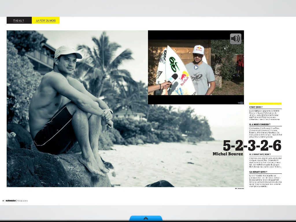 L’ application gratuite Surfsession Mag permet d’accéder où que l’on soit aux magazines dans leur version numérique. Chaque numéro permet ainsi d’accéder à du contenu exclusif et parfois inédit : enrichissements photos, vidéos, interviews, audio, approfondissement d’articles…