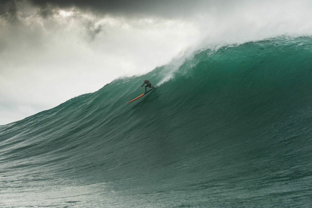 Shane Dorian : C’était très dur de rester en place au line-up. Tu comprends pourquoi les gars préfèrent la prendre en tow-in. [—] C’est très technique à surfer, car il y avait beaucoup de vagues sur lesquelles je ne pouvais rien faire. Ma planche faisait 11’3 de long et 4 ¼ d’épaisseur. C’est juste un énorme bateau en fait ! Du coup elle est difficile à contrôler. Il me fallait partir tôt pour espérer pouvoir prendre la bonne trajectoire. [—]