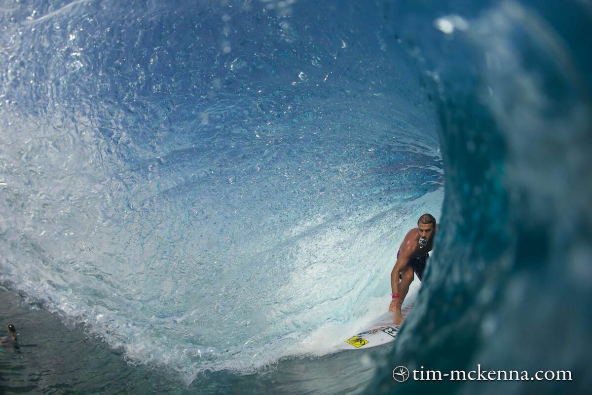 “Nous étions en shooting avec tout le team Body Glove sur la presqu’île de Tahiti. Les conditions étaient parfaites pour des images aquatiques. Je faisais plutôt des images sous l’ eau mais quand Anthony a démarré sur cette vague, j’étais vraiment bien positionné pour le shooter dans le tube. Anthony Walsh est l’un des meilleures tube riders frontside à Teahupoo et certainement l un des meilleures surfeurs/cameraman qui réalisent des images embarquées en GoPro. Cette image montre vraiment la concentration et l’engagement de ces nouveaux athletes doués pour réaliser leur propre images.”