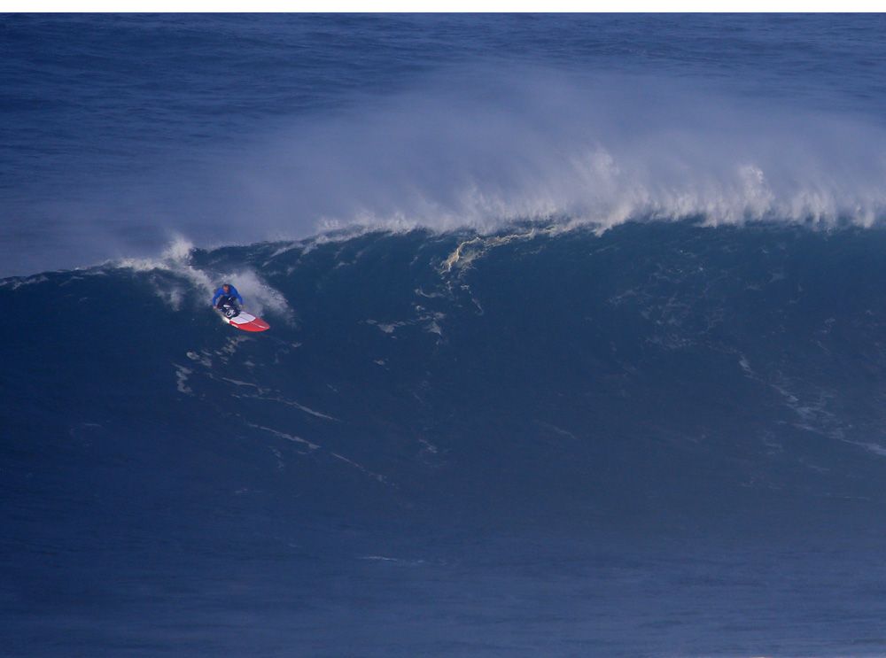 Andrew Cotton, qui est un très bon ami et un des spécialistes de Nazaré, m’a drivé sur le spot et je ne le remercierai jamais assez pour son accueil J’ai aussi pu compter sur Kealii Mamala chaud pour m’accompagner en stand up, Garrett et Hugo Vau.