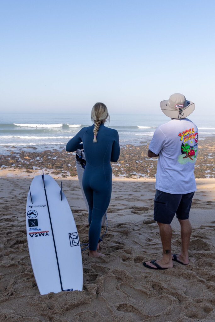 Debriefings et conseils pré et post-heat avec son coach Yann Martin, test de planches avant la compétition, retour en images sur ses séries, sessions entraînement pendant les jours off… La surfeuse nous fait vivre sa compétition, depuis le premier tour jusqu’en huitièmes de finale, où elle s’est malheureusement inclinée face à India Robinson pour finir neuvième de la compétition.