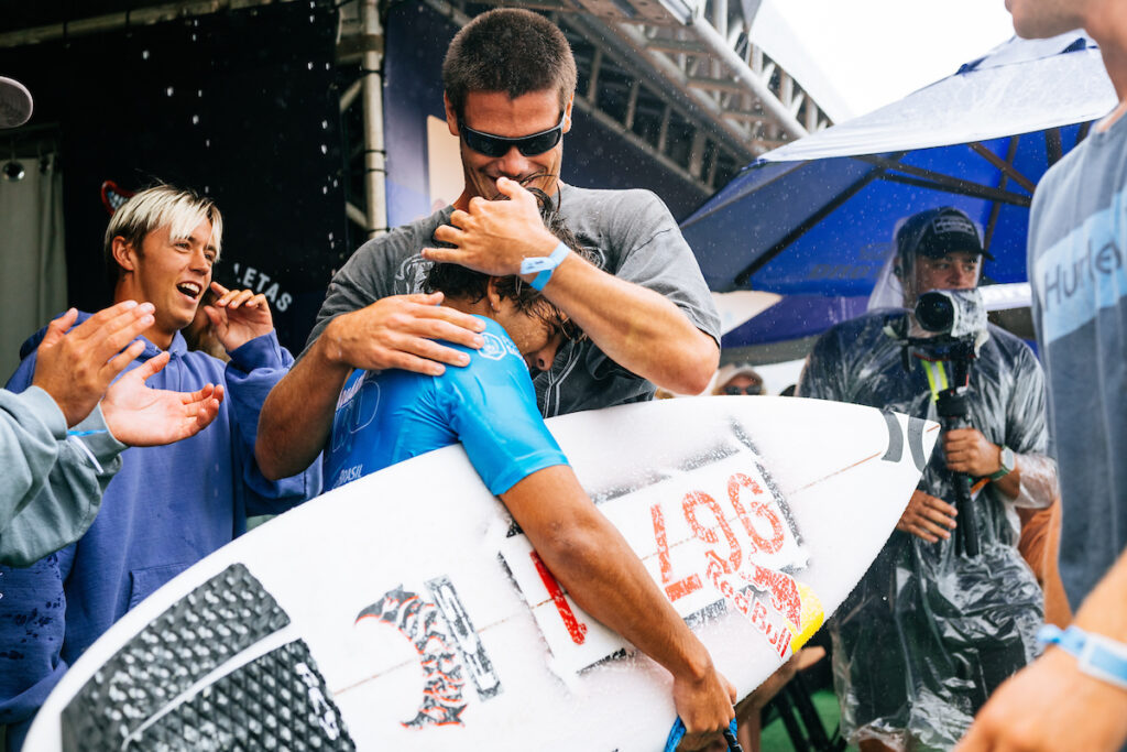 Il reste un petit frère à affronter, celui de la famille Pupo qui comptera aussi deux membres sur le CT l’an prochain. Plus qu’une marche à franchir pour Braye, mais en plus d’avoir sa famille et le public avec lui, Samuel Pupo a encore les dieux du surf dans son camp. Alors que Mihi se concentre sur cette gauche qui lui a tant réussi, Sammy trouve une droite improbable et l’assaisonne de 4 virages bien placés. Le score est excellent et Mihimana ne s’en remettra pas. Il obtient quand même un formidable résultat, le meilleur résultat de sa carrière, tandis que Pupo termine la saison comme il l’a commencé sur la Gold Coast…