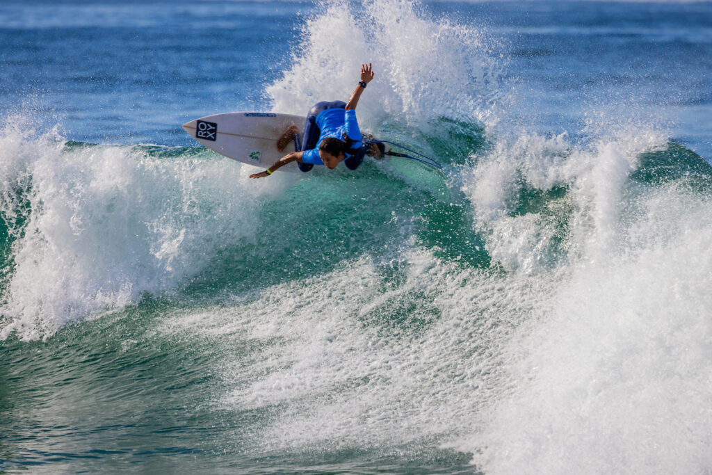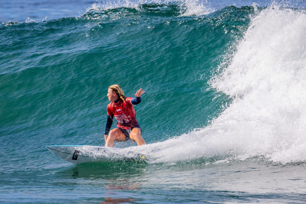 Vahine a été impeccable sur ces deux jours. En 8e c’est elle qui prend les 4 meilleures vagues de la série face à une Kirra Pinkerton déboussolée. Opposée ensuite à une surfeuse calibre CT en la personne d’Isabella Nichols, la Tahitienne monte encore d’un cran avec deux excellentes vagues où elle enchaine les rollers backside. Son total à 17 points est sans égal dans cette compétition. Et oui, vous ne rêvez pas, c’est bien la surfeuse qui s’imposait dans d’énormes tubes en gauche qui enquille ici les manoeuvres sur une toute petite droite. Fierro est une vraie pépite !