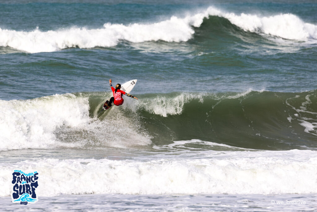 “Tous les entraînements effectués ici quand c’est compliqué, qu’il fait froid et que c’est mauvais, ont payé ! Ça fait plaisir de voir que ça a payé pendant les Championnats de France. Je savais qu’il y aurait de bonnes vagues, du coup j’ai vraiment voulu attendre la bonne, assurer et mettre mes turns. Sur ma première gauche (son 1er gros score), je marchais un peu sur des œufs car la vague est allée vite. Quant à la droite, j’ai tenu le turn et ça l’a fait, j’ai eu le score. Je n’ai pas vu la dernière vague de Lucie (Bonnier), mais de toute façon je ne pouvais plus rien contrôler donc j’ai attendu et espéré. Je suis très contente, c’est ma dernière année junior et je voulais vraiment ce titre à domicile, juste à côté de la maison. Je suis aussi vice-championne de France en Open donc parfait !”