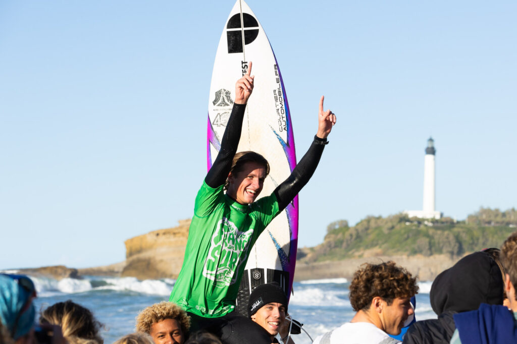 “Ce titre ? Ça fait vraiment plaisir, à Biarritz en plus ! Je suis vraiment content d’avoir raflé le titre pour ma dernière année en junior. J’ai hâte de voir ce que ça va donner maintenant en Open. Dans cette finale j’ai été très stressé, c’était très serré mais je me suis accroché et j’ai réussi à choper la bombe, en plus de claquer un gros rollo pour prendre le score. Je suis vraiment content ! Dans les dernières secondes j’ai vu mes concurrents partir, là j’ai vraiment stressé. À la fin c’était très long mais ça valait vraiment le coup de remettre une combi après mon retour des Canaries”.