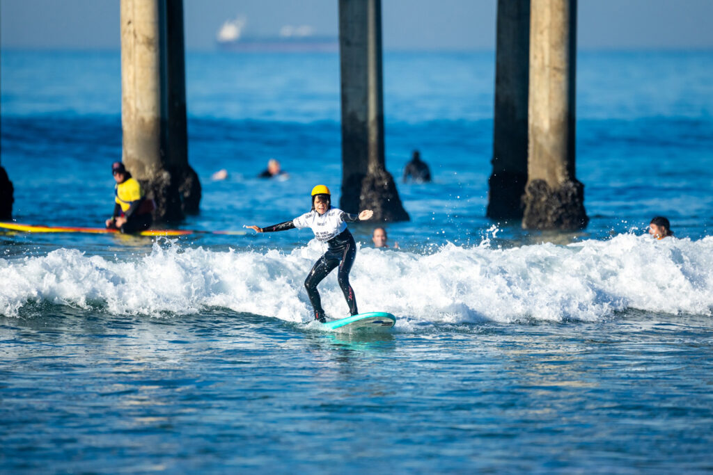 Le bronze et la 3e marche du podium qui va avec, c’est ce qu’a obtenu Héloïse Lauriol (15 ans) pour sa toute première participation. Six mois après avoir débuté le surf, la Bretonne a fait sensation en Californie en partant sur certaines des plus grosses vagues de la compétition. Et si la Portoricaine Alelí Medina est à mille lieux devant, la Canadienne Ling Pai n’a pas eu la finale facile pour conserver la médaille d’argent.