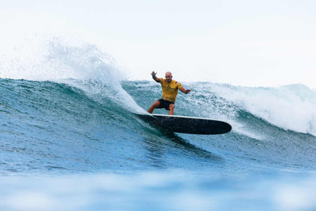 Taylor Jensen semble avoir étudié la méthode John John Florence : attendre son tour patiemment et surfer un minimum de vagues pour un maximum d’impact. Il ne prend donc que deux droites dans le premier match et deux de plus dans le second, mais ses carves sont tellement puissants et ses déplacements tellement fluides que les scores s’envolent bien au delà de ce que les autres surfeurs ont pu obtenir. Kai Sallas ne fait pas le doublé, c’est bien Taylor Jensen qui décroche un 4e titre mondial à 40 ans. Il prend désormais place aux cotés de son beau-père dans les livres d’histoires, puisque Nat Young et lui sont les seuls longboardeurs parés de 4 couronnes mondiales.