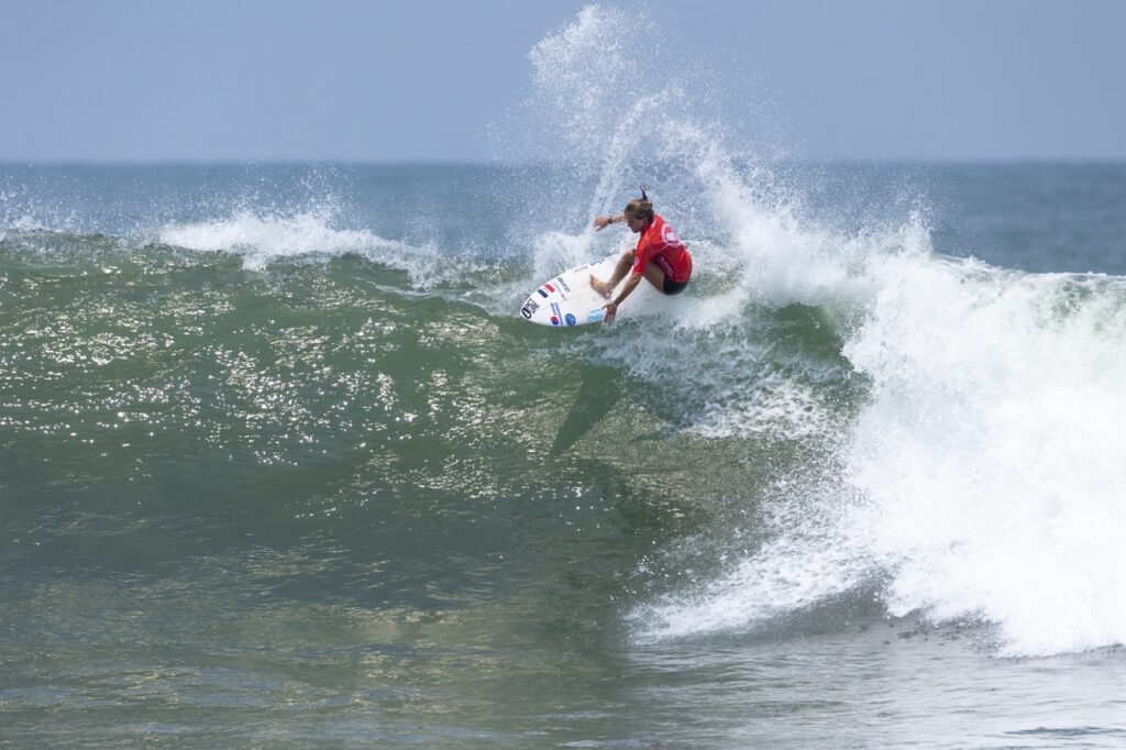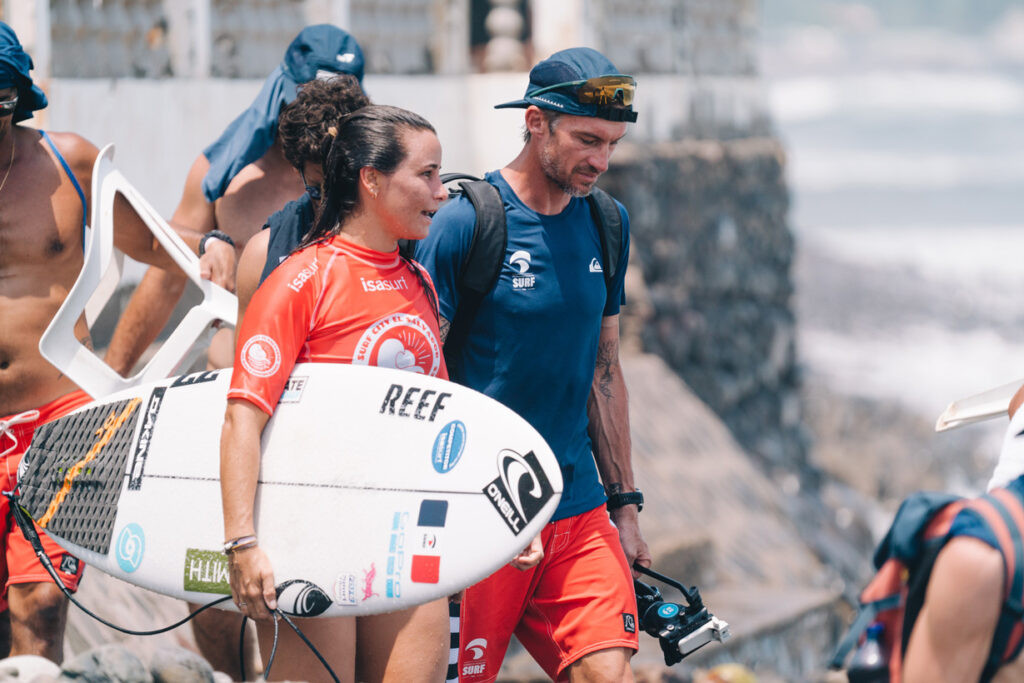 De son côté Vahiné Fierro n’a pas remporté sa série, qui est revenue à la Costaricaine Leilani Mcgonagle, mais elle est montée en puissance dans son surf avec une grosse manoeuvre engagée sur chaque vague. La Tahitienne sait qu’elle devra en faire encore plus dans les tours suivants ; mais elle est en confiance. « Avec Jérémy (Florès), on avait convenu qu’il fallait que je prenne des vagues de qualité et que je monte d’un cran en technique, expliquait-elle après sa série. Le plan a été respecté. J’ai eu de bonnes vagues avec une grosse manœuvre, même s’il m’en a manqué une deuxième pour avoir de meilleurs scores. »
