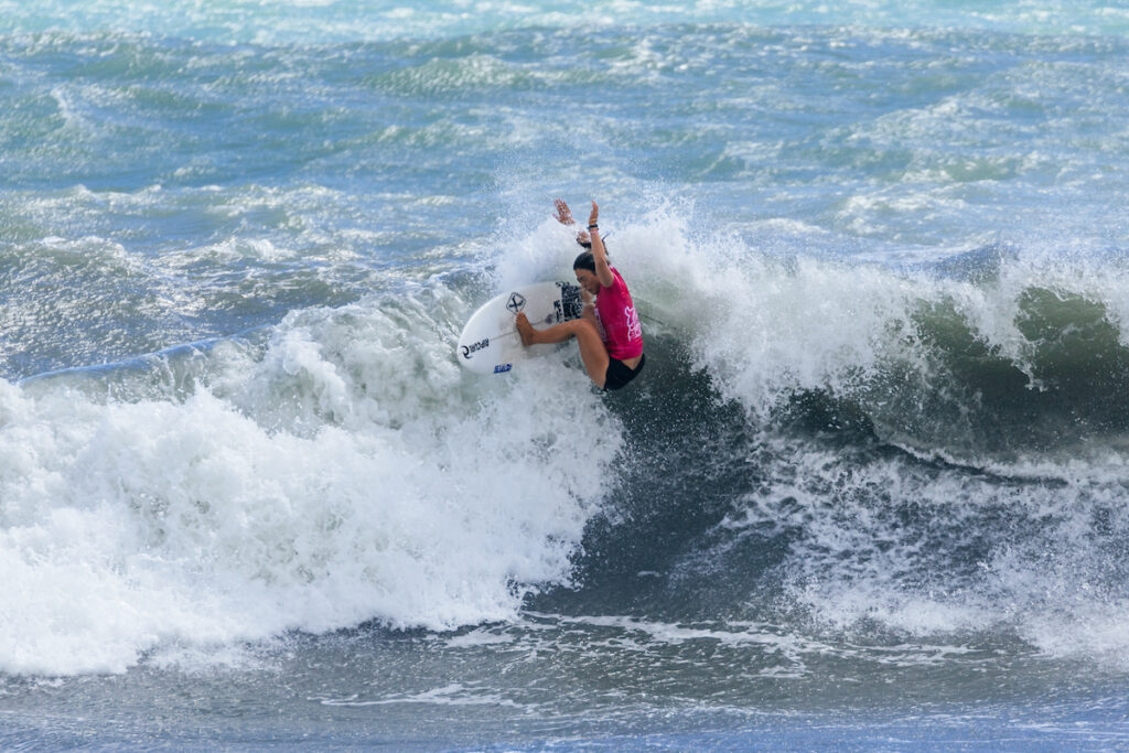 Dans la finale féminine, c’est sans surprise que la médaillée de bronze olympique Amuro Tsuzuki a affronté l’une des surfeuses les plus en forme de la saison, Sara Wakita. Tsuzuki cherchait à confirmer sa victoire de 2019 à Jinzun Harbor et Wakita cherchait à remporter une deuxième victoire sur le circuit QS 2023 après avoir gagné le Tamil Nadu International Surf Open (QS 3000) en Inde. Cette finale fut elle aussi une affaire de suspens. Amuro Tsuzuki semblait prête à bondir pendant toute la durée du heat, mais la vitesse et la finesse frontside de son adversaire ont permis à Sara d’obtenir un excellent total de 16,17, que Tsuzuki n’a pas réussi à dépasser.