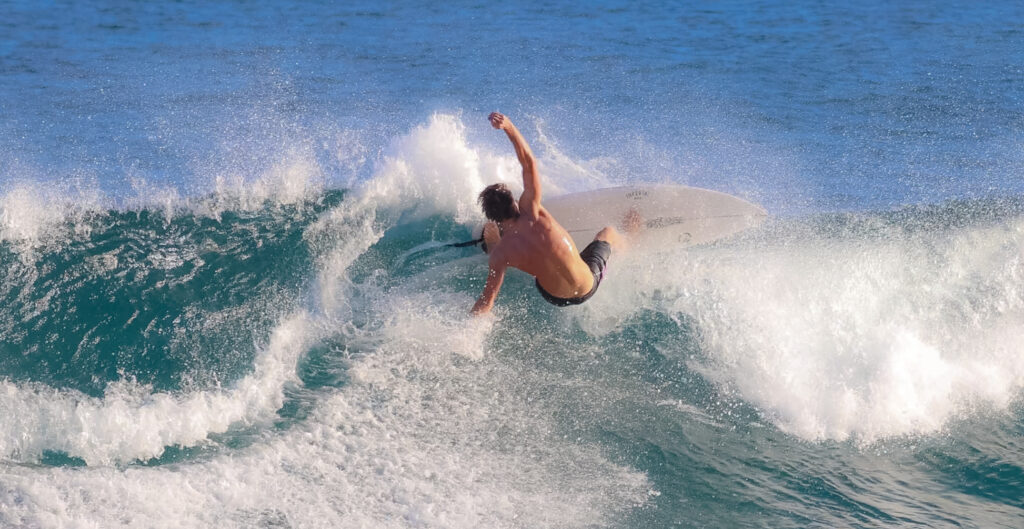 « Je suis revenu chez moi à Saint-Barth après la première partie de la saison QS, la veille d’une bonne houle qui a frappé nos côtes. Ça fait toujours du bien de revenir à la maison, de retrouver les vagues, le soleil et de pouvoir profiter de la famille avant de repartir en voyage. Pendant la off season, j’ai prévu de passer pas mal de temps entre les Caraïbes, l’Amérique latine et l’Amérique du Sud, ce qui va me permettre de surfer de nouvelles vagues, de faire des rencontres et des connexions et d’apprendre une nouvelle langue (rires). Tout ça pour me préparer au mieux pour la reprise de la saison en février au Maroc, si la compétition est confirmée » raconte Noe.