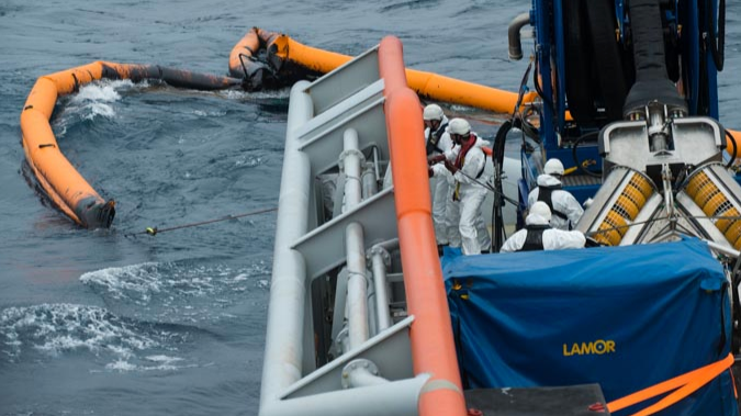 [#GrandeAmerica] Poursuite des opérations anti #pollution débutées hier après-midi sous la coordination du directeur du centre d'expertises pratiques de lutte antipollution. Communiqué de presse : https://t.co/uskxoFBFGp @SGMer @FdeRugy @Min_Ecologie @CedreBrest @MarineNationale pic.twitter.com/60AcxBxogz