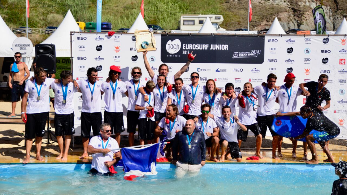 Ce dimanche à Santa Cruz, au Portugal, se déroulait la 14e édition de l’EuroSurf junior. C’est au cours de celle-ci que l’équipe de France junior a décroché son 11e trophée, quatre ans après son dernier titre. C’est un grand retour en force qui a été proposé par l’équipe. Malmenée pendant toute la semaine par le Portugal qui surfait a domicile, la France réussira a s’imposer au final de 215 points devant l’Espagne… Soit l’écart le plus infime de l’histoire de l’EuroSurf junior ! C’est ainsi qu’elle a remporté son 11e titre en 13 participations !