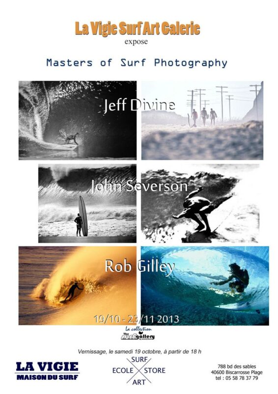 A Biscarrosse, à La Vigie, vient de s’ouvrir l’exposition photos de trois grands noms de la photo de surf. John Severson, fondateur de Surfer Magazine, avec des photos des 60’s. Jeff Divine (directeur de la photo de Surfer’s Journal), avec des photos superbes de Gerry Lopez et des 70’s et Rob Gilley pour les photos des 80’/90’s et aquatiques. Une exposition à ne pas manquer si vous êtes dans le coin.