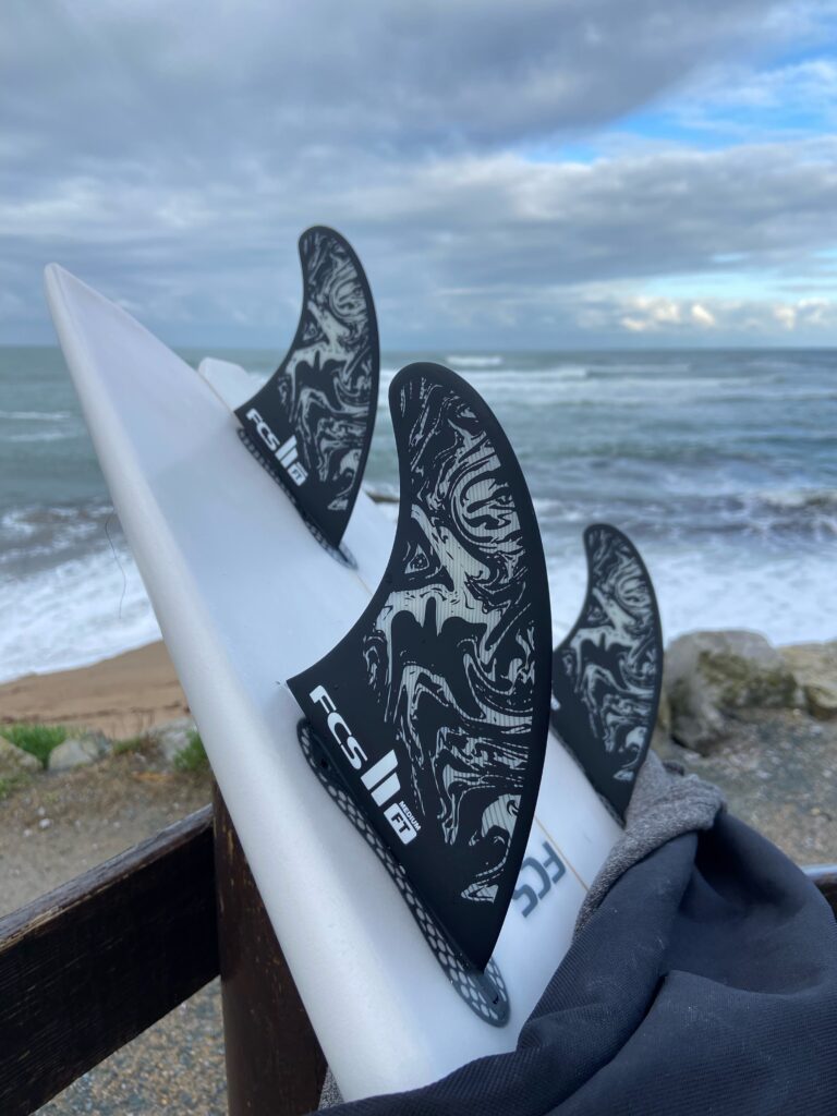 À l’arrivée de l’automne et sa succession de swells consistants, nous avons testé les dérives FCS II pro modèle de Filipe Toledo performance core black white, taille M. Esthétiquement, le design est vraiment réussi et les dérives allient bien légèreté et flexibilité. La technologie AirCore permet, grâce à son noyau de mousse de polyuréthane pressé, de réduire la quantité de fibre de verre requise dans le processus de moulage en conservant l’intégrité du flex. D’un point de vue shape, nous retrouvons le sweep prononcé des Accelerator. Rendez-vous sur les beachbreaks landais, 1m20 un peu venté mais propre, pour tester leur potentiel. Côté technique, les dérives offrent un contrôle important qui met en confiance pour passer les sections. Nous sommes également conquis par l’accroche au bottom et leur manoeuvrabilité, typique de l’Accelerator, dans des conditions de tous les jours. Ce modèle polyvalent convient à un surfeur experimenté ayant un surf puissant (à l’image du double champion du monde brésilien).