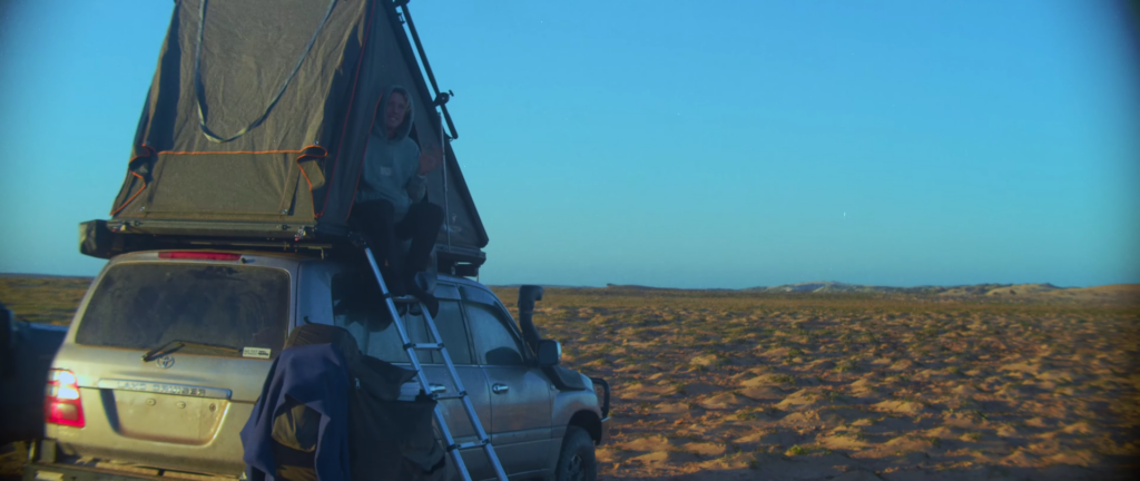 Jacob connait bien l’ouest du pays, il habitait à Margaret River pendant son enfance et il passait beaucoup de temps avec sa famille aux alentours de la gauche. À l’époque, ils vivaient déjà dans une caravane, juste devant le spot. On aimerait presque en savoir plus sur leur petit camping sauvage. À bord de leur 4×4 équipé d’une tante de toit, ils peuvent se déplacer partout (ou presque) et s’installer rapidement pour dormir. Il semblerait qu’ils soient restés plusieurs jours sur place, puisque la taille a quasiment doublé. Un trip qui colle parfaitement avec son sponsor majeur à savoir Rip Curl, pionnier dans les voyages à la recherche de vagues méconnues.