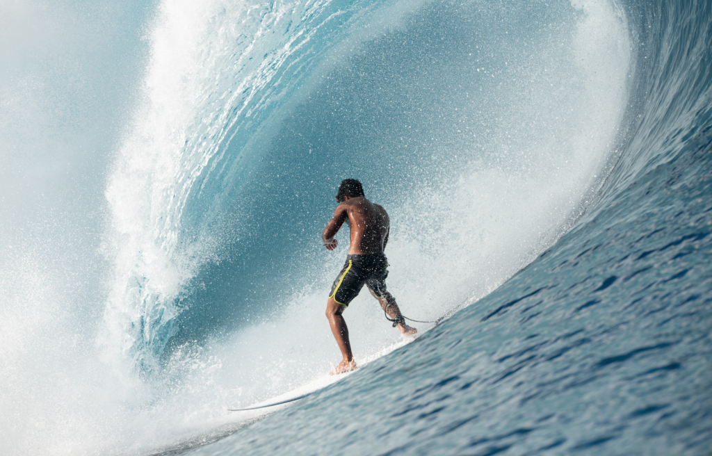 La nature polynésienne et ses bruits, ceux de la jungle luxuriante puis de l’océan et la connexion des locaux aux éléments… Tim McKenna fait partie de ces rares photographes qui, mieux que personne, savent immortaliser la beauté océanique, les Tahitiens et le lien vital qu’ils entretiennent avec Teahupo’o, où ils passent des heures qui se comptent par milliers. Tahurai Henry est le descendant des premiers Tahitiens a avoir habité sur les terres qui font face à la magnifique gauche. Il agit à son échelle pour protéger la vague, son authenticité et transmettre aux jeunes générations l’amour et le respect de celle-ci.