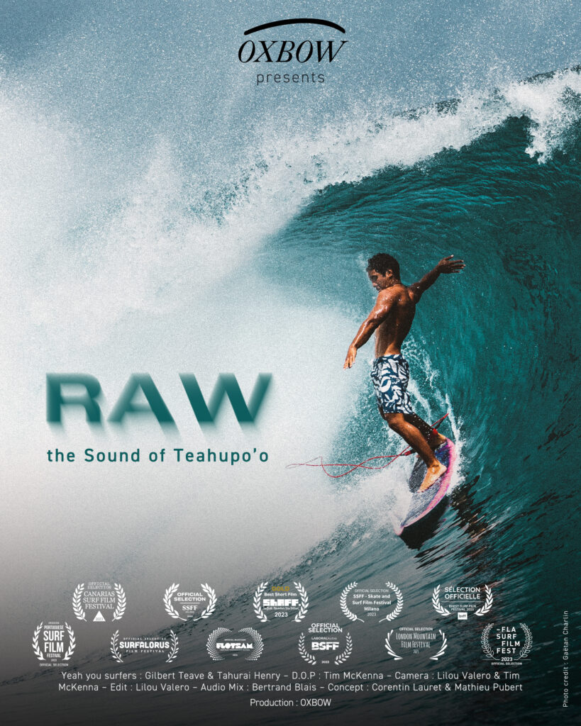 Ce petit film Oxbow de trois minutes a été sélectionné dans plusieurs festivals et récompensé du prix du « meilleur film court. » « RAW – the sound of Teahupo’o est plus qu’une énième vidéo de surf de la mythique vague de Tahiti, ce short film (3min) est un véritable voyage visuel et sonore. Pas de musique ni de blabla, juste le spectacle de la nature dans ce qu’elle a de plus brut à offrir ! » affirme la marque.