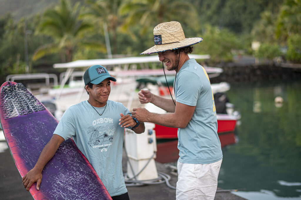 Voici ses mots à propos de Teahupo’o et de la jeune génération, dont Gilbert fait partie : « Je profite de ce cadeau dont on a hérité. C’est l’idée que j’essaie de faire passer aux jeunes. Je veille sur eux comme sur des petits frères, dans la mer comme dans la vie. C’est le cas de Gilbert Teave qui fait partie de ceux à qui j’ai donné une de leurs premières planches. Gilbert est destiné à être le prochain prince de Teahupo’o.«