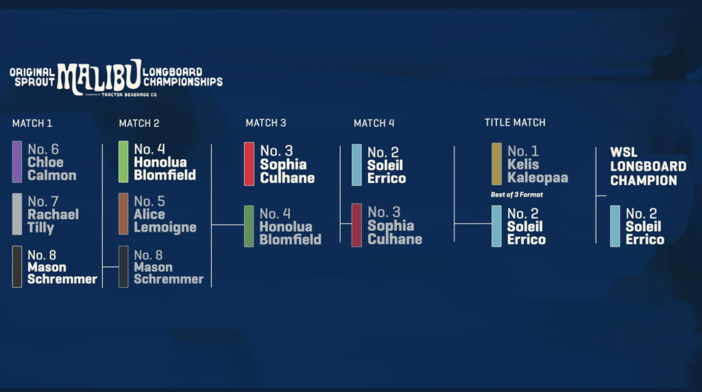 Soleil Errico a remporté cette nuit son troisième titre mondial historique à Malibu, sa ville natale. L’Américaine avait remporté son tout premier titre mondial en 2018 lors de l’Open Longboard Championships de Taïwan. La saison dernière, elle remportait son deuxième titre à Malibu. Avec sa victoire d’hier, la surfeuse a rejoint la liste des triples champions du monde de longboard WSL, sur laquelle figurent notamment Honolua Blomfield, Taylor Jensen, Cori Schumacher, Rusty Keaulana, Joel Tudor et Colin McPhillips.