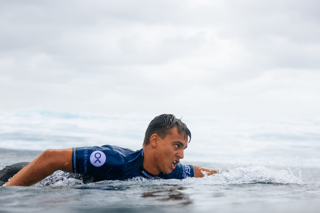 Hier, Kauli Vaast, wildcard de l’événement, a réussi à vaincre deux des surfeurs les mieux classés sur son chemin vers les quarts de finale. Il a d’abord éliminé le numéro 4 mondial Joao Chianca aux repêchages, puis Griffin Colapinto alors numéro 3 en huitièmes de finale. Le Tahitien avait déjà participé à cet événement en tant que wildcard l’année dernière et s’était rendu jusqu’en finale où il avait terminé à la seconde place. Il est aujourd’hui sur le point d’atteindre de nouveau la finale.