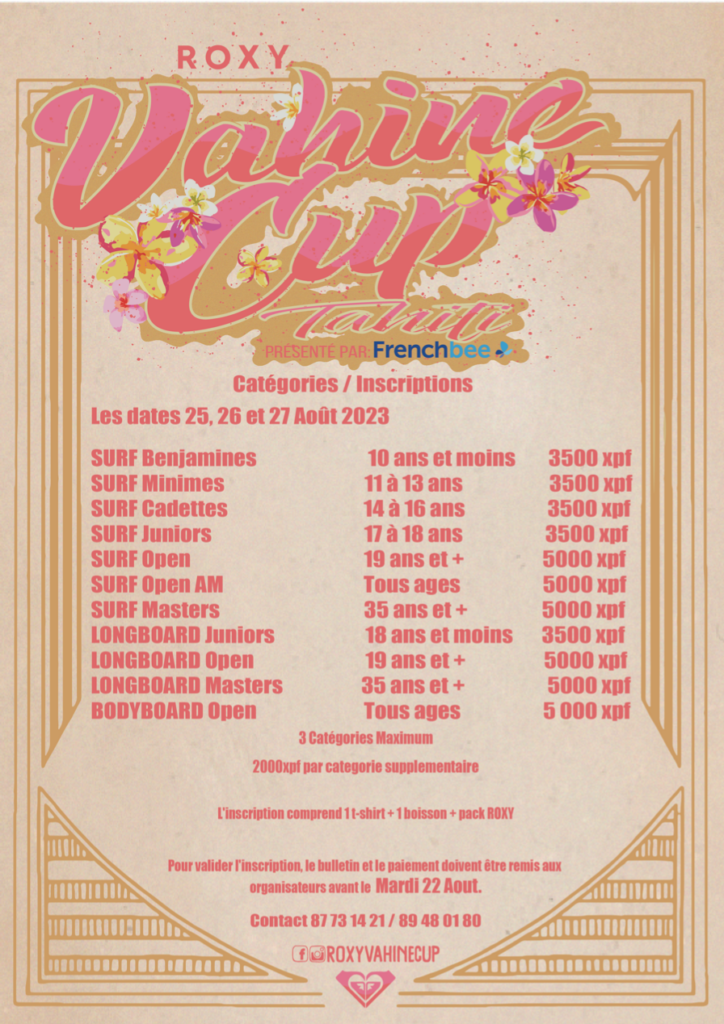 Les catégories et le programme de la Roxy Vahine Cup 2023