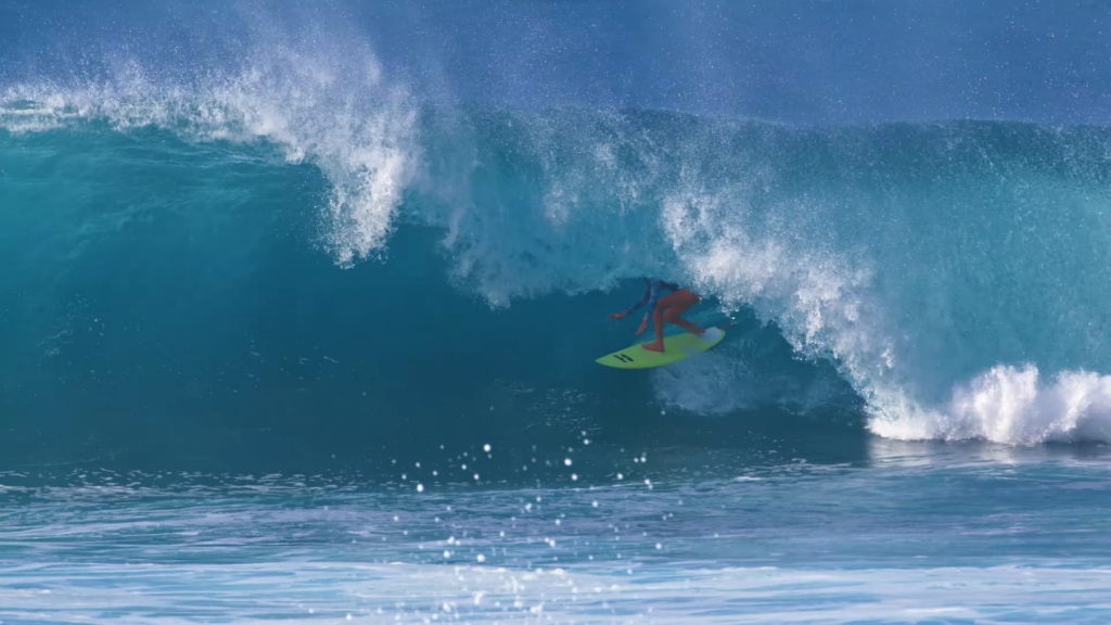 Cette année encore, la surfeuse aura eu la chance de surfer des vagues de toutes les tailles et de toutes les formes sur le North Shore. Et son quitter fut aussi varié que les les vagues qu’elle chevauchait tous les jours. Accompagnée de Coco Ho, la plus locale des locales et de Juliette Lacome venue elle aussi sur cette période, Laura a surfé un petit beach break avec son twin rétro bleu et mauve. Quelques jours plus tard, casque vissé sur la tête, elle était au fond d’un barrel large comme un bus à Backdoor.