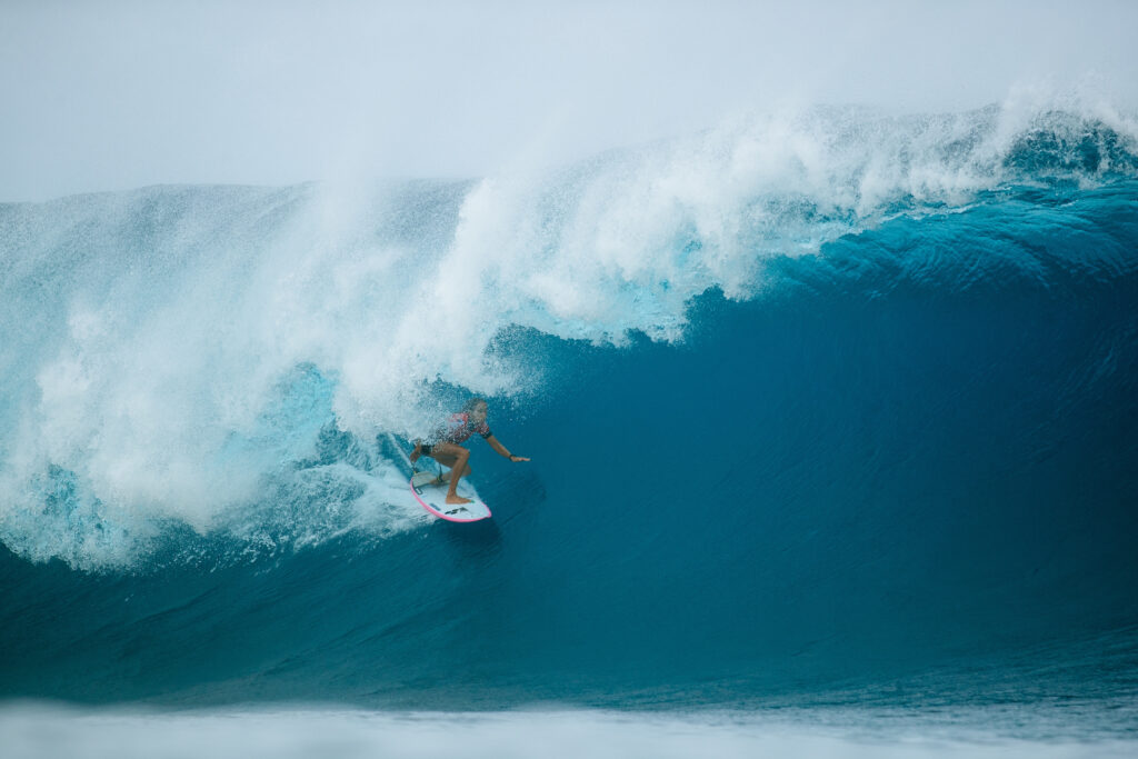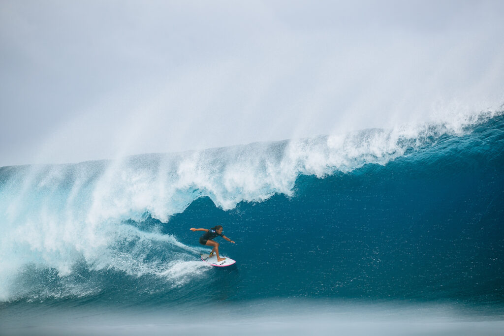 « Donnez-leur une plateforme, et elles performeront« . Vahine Fierro a remporté le Tahiti Pro dans d’énormes conditions de 1m80 à 3m sur le site mondialement connu de Teahupo’o, à Tahiti. Dans une saison unique où le lieu de cette compétition du WSL Championship Tour est le même que celui des Jeux olympiques de Paris 2024, Teahupo’o a accueilli des conditions incroyables pour les quarts de finale, les demi-finales et la finale des femmes cette nuit. Dans ces dernières, les femmes ont continué à repousser les limites du surf féminin, dans des vagues massives et épaisses, démontrant encore une fois ce que les meilleures surfeuses du monde sont capables de faire dans des vagues de conséquence. La meilleure d’entre elles ce jour-là est Tahitienne, s’appelle Vahine et score un résultat historique à plusieurs titres. Il s’agit de la première victoire pour un(e) athlète Tahitienne sur cette vague, ainsi que de la première victoire sur une étape de CT d’une wildcard, depuis Moana Jones Wong à Hawaii en 2022.