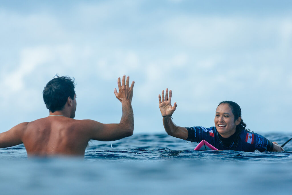« Je savais et je croyais qu’à un moment donné, je gagnerais cette épreuve », a t-elle déclaré. « Mon corps est endolori de partout, j’ai donné le meilleur de moi-même. C’était de la folie. Je veux juste remercier tout le monde parce que toute leur énergie est ce qui me motive, ce qui m’inspire. Je voulais remercier Jeremy Flores de m’avoir encadrée pendant tout ce temps. Jessi Miley-Dyer a pris l’incroyable décision de nous lancer aujourd’hui, et c’est ce dont les femmes ont besoin. Merci à Jessi d’avoir fait confiance aux femmes, parce que nous étions plus que capables. Merci à Teahupo’o, si spéciale, et merci de m’avoir envoyé les meilleures vagues de ma vie en série. Teahupo’o est aussi pour les filles«