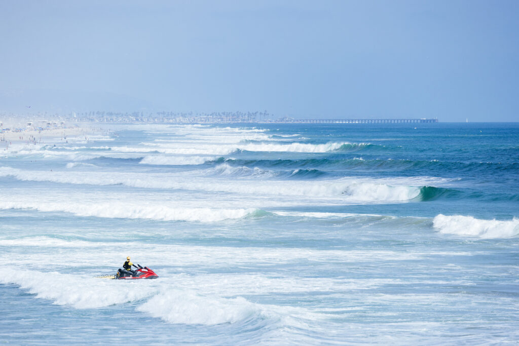 La houle est arrivée hier à Huntington Beach en Californie, pour la seconde journée du Lexus US Open of Surfing, étape n°4 des Challenger Series 2024, offrant un spectacle de haute performance. Une houle de sud de 1m20-1m80 s’est invitée tout au long de la journée, permettant au round of 64 masculin d’être lancé, avec des batailles entre les têtes de série, les compétiteurs élevant leurs performances à un niveau encore supérieur. La journée fut rythmée par des surprises et des moments forts qui ont fait vibrer les spectateurs, venus nombreux sur la plage.