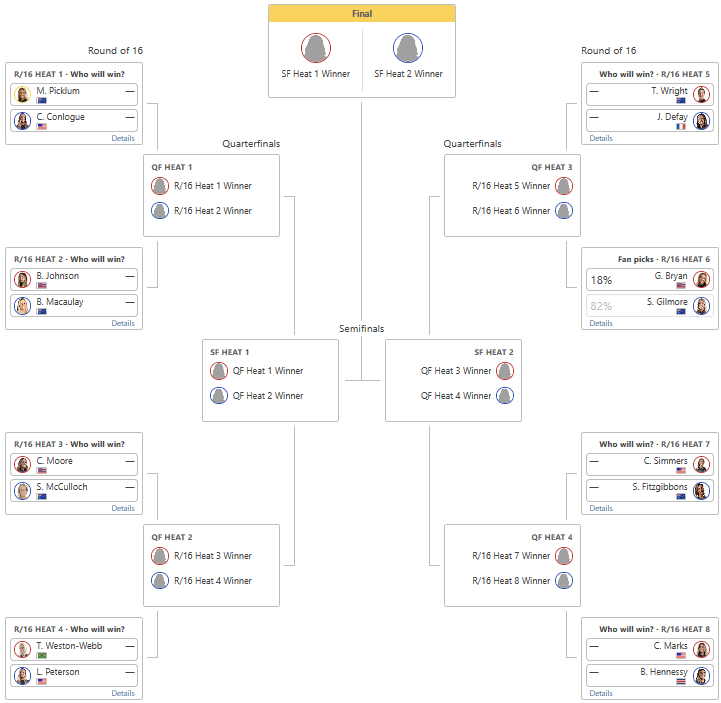 Johanne Defay fait aussi partie des fauteuses de troubles, elle qui vient de commencer sa saison après 3 absences pour blessure. « Jojo » a notamment éliminé Macy Callaghan, qui siège à présent 10e au classement et qui y perdra donc malheureusement des places à mesure que la compétition avancera.