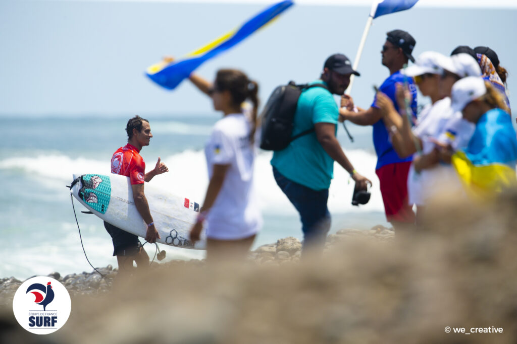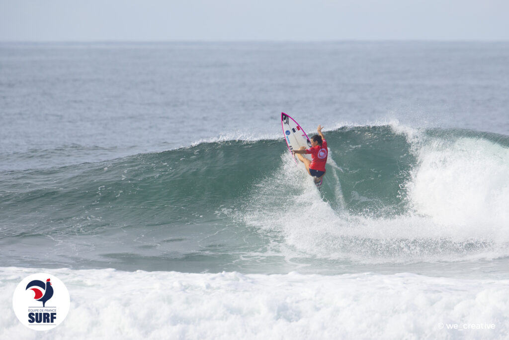 Quant à Kauli Vaast, qui honore sa première sélection en équipe de France, le jeune tahitien de 21 ans a eu besoin de quelques vagues pour mettre en route la machine. Sur les petites gauches de la Bocana, il a successivement scoré un 6,50 points pour un re-entry engagé, puis un 7,50 points sur sa toute dernière vague avec un carve surpuissant, un second et un re-entry tout en maîtrise. « J’étais assez stressé au début et je suis pas mal tombé au début avec les clapots. J’ai mis un peu de temps à trouver mes marques et ça s’est finalement bien terminé. Je suis passé, je suis content » a reconnu Kauli.