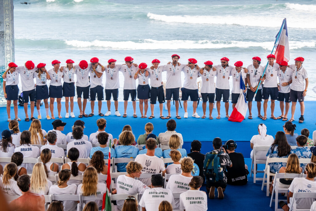L’équipe de France de shortboard junior courait derrière ce podium depuis huit ans et son titre, le premier et le seul à ce jour, de 2016 aux Açores. Elle a enfin pu regoûter au métal de bronze à l’issue d’une folle semaine où elle s’est fait très peur. Huitième au classement avec les deux tiers de l’équipe éliminés après 6 journées de compétition, elle aura terminé en boulet de canon grâce aux performances féminines. Les tricolores sont sur la boite pour la 6e fois en 20 éditions (2006, 2013, 2014, 2015, 2016 et 2024) et on peut dire qu’ils ont sérieusement redressé la barre.