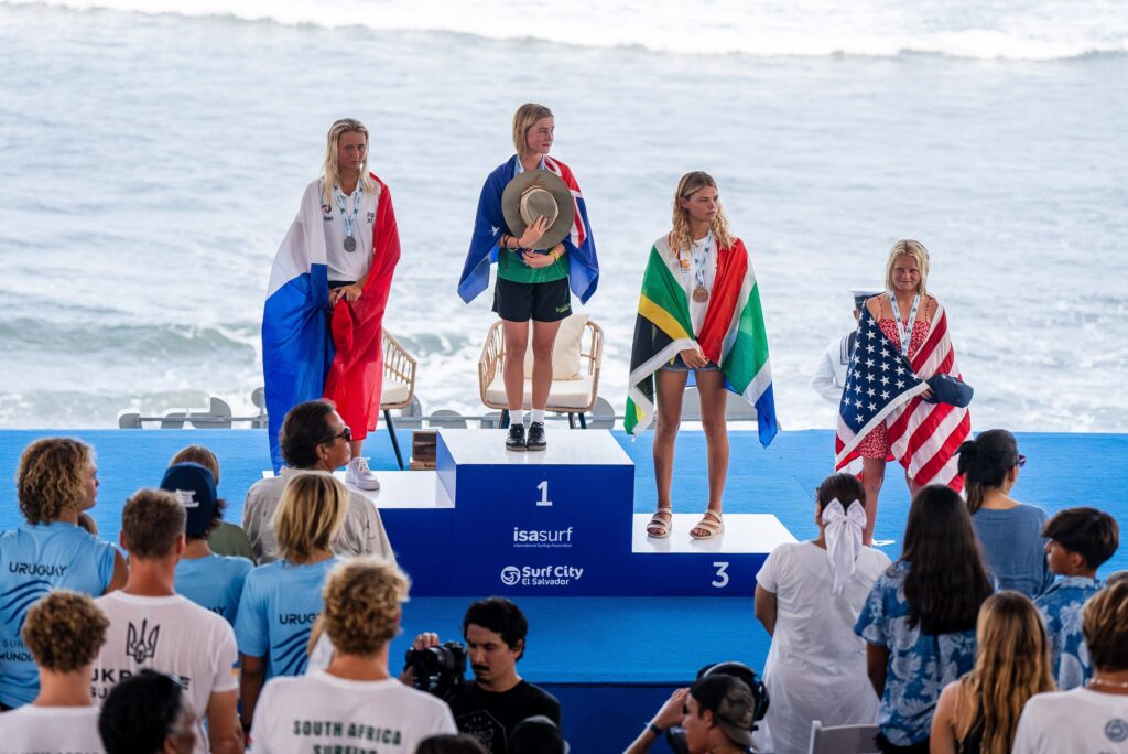Clémence Schorsch (U16) et Tya Zebrowski (U18) ont réussi une performance majeure en devenant vice-championnes du monde hier dimanche 12 mai, à Surf City au Salvador, où se sont achevés les Championnats du monde juniors ISA après neuf jours de compétition. Sous une chaleur accablante et dans des vagues de 1m50 à 2m, les deux jeunes tricolores ont puisé dans leurs ressources physiques et mentales pour arracher ces médailles d’argent qui, combinées à la 6e place de Tya Zebrowski en U16 et aux très bons résultats de Naïa Monte, 11e en U16, et Anaïs Blanchard, 16e en U18, la veille, permettent à l’équipe de France de monter sur le podium du classement des nations et de récupérer sa position de première nation européenne. L’Australie s’impose largement avec les deux titres individuels de Ziggy Mackenzie (U16) et Dane Henry (U18).