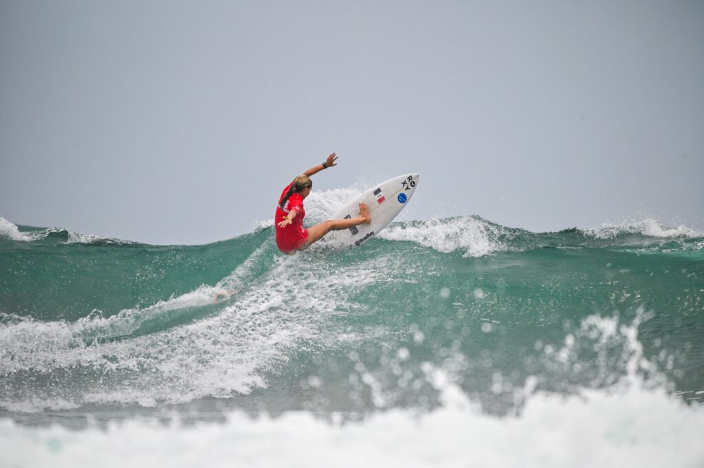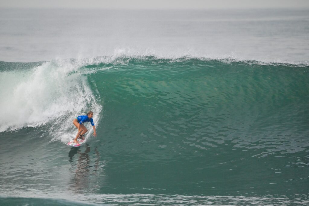 Six mois après l’exploit du Brésil où la jeune landaise avait surpris tout le monde en se hissant d’un trait jusqu’en finale U16, elle est venue confirmer que sa 4e place de 2023 n’était pas due au hasard mais bien au travail. La championne de France de shortboard et de bodysurf, véritable watergirl, au sens marin décuplé et à l’intelligence tactique, a prouvé qu’elle avait sa place dans le concert international en frappant un nouveau grand coup. Plutôt réservée sur la plage, elle parvient à se muer en compétitrice impitoyable dans l’eau. Après avoir franchi deux tours de repêchages en matinée, dont le second en éliminant sa compatriote Tya Zebrowski, Schorsch a parfaitement géré les 30 minutes de sa finale avec l’option des droites à l’est du spot de la Bocaña. Et quand la grande favorite américaine Eden Walla, en bronze l’an dernier, s’empêtrait dans le bouillon face au podium des juges, Schorsch et l’Australienne Ziggy Mackenzie faisaient la différence plus au large.
