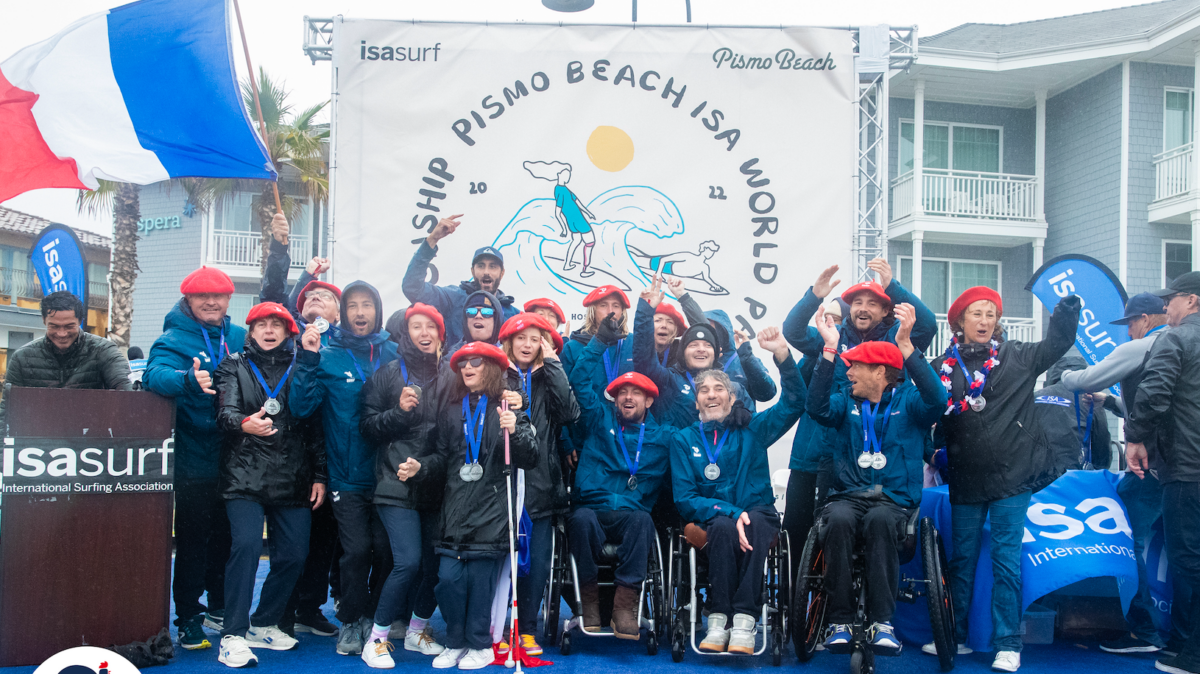 L’équipe de France a réussi son pari en montant sur le podium des championnats du monde de para surf qui se sont achevés la nuit dernière à Pismo Beach, en Californie. Les Français terminent à moins de 200 points des Etats-Unis, vainqueurs à domicile. Après ses 5es places en 2018 et 2020, L’équipe de France réalise sa meilleure campagne en 7 participations aux championnats du monde. Valentine Moskoteoc, Thomas Da Silva et Guillaume Colin remportent l’argent dans leur catégorie, Laurie Phipps, Philippe Naud, Eric Dargent et Emmanuelle Blanchet sont en bronze, Céline Rouillard ramène le cuivre. Bravo les Bleus !