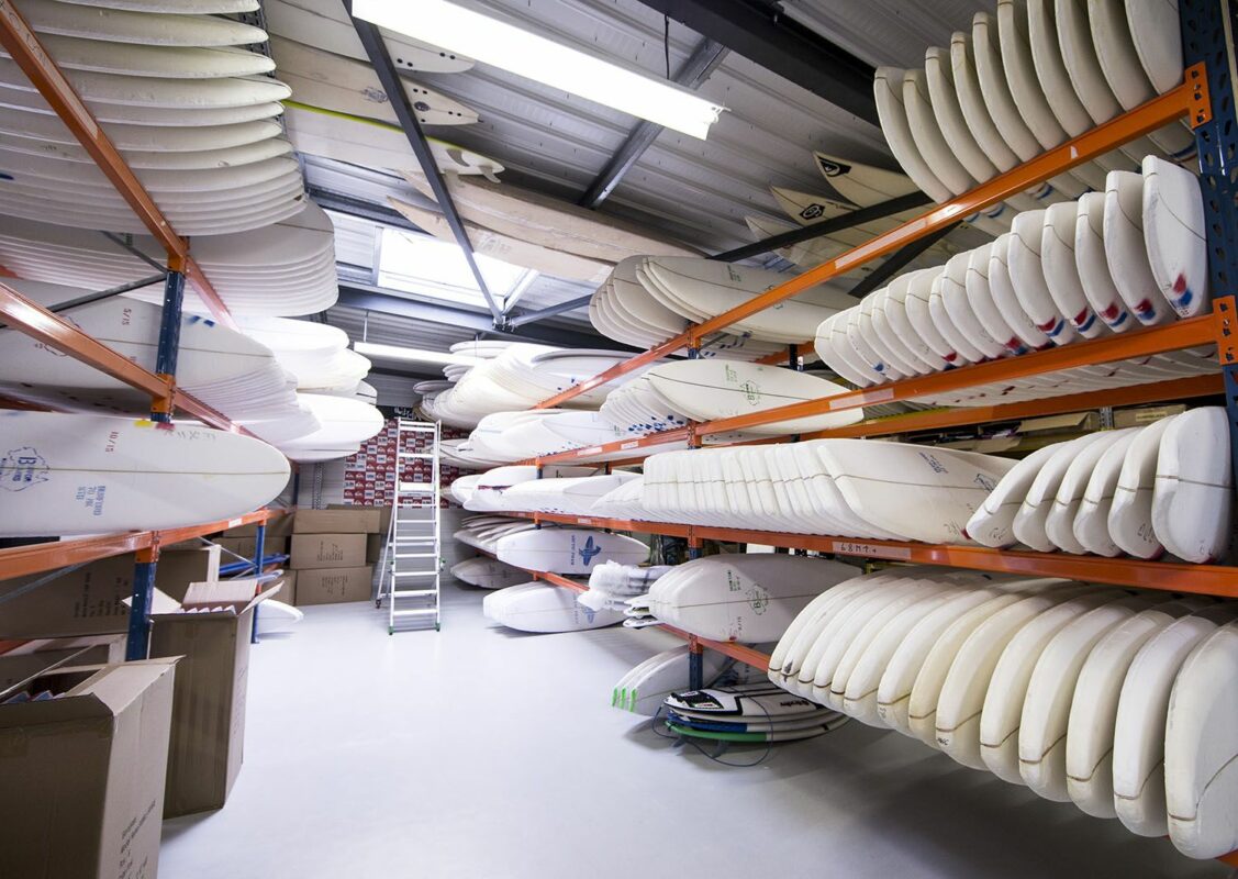 Ouvert à Soorts-Hossegor au début des années 90 par l’Australien Stephen “Belly” Bell, Euroglass est devenu depuis 2011 et l’ouverture de son nouvel atelier le plus gros producteur de planches de surf de l’hexagone. Un endroit étonnamment propre et ordonné pour un atelier de shape, et pour cause : Belly exige que l’endroit soit impeccable, “comme dans une écurie de F1”.