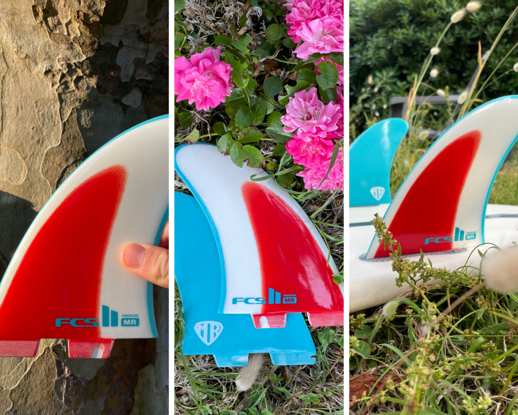 L’été est souvent synonyme de vagues moins tempêtueuses, avec des conditions plus petites mais plus propres. C’est l’occasion de sortir le twin pour des petites vagues creuses et foncer à Mac12. Les dernières FCS2 Mark Richards d’un multicolore qui passe partout, est le jeu twin fins classique par excellence. Il n’y a pas plus efficace sur une board rétro ou qui s’en rapproche car il est adapté à un style loose comme incisif. Sa faible courbure offre la possibilité de faire des courbes plus serrées et de ne pas limiter les habitués du thruster à faire de longs virages qui, pour le coup, se réalisent moins bien dans les vagues petites et rapides d’été. Ces dérives sont plus grandes que le précédent modèle de Mark Richards qui était fait davantage pour la performance pure. Son glassage (d’où l’aspect brillant) offre une glisse différente de celle en composite tandis que la forte rigidité du modèle est parfaite pour les personnes puissante dans leur surf, avec de lourds appuis.