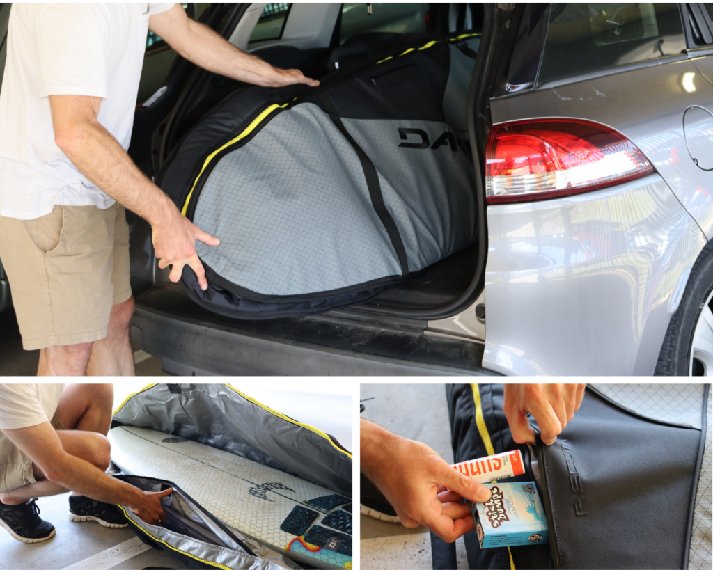 Pourquoi en parler spécialement dans un shopping test été ? Son coté isotherme marche à merveille et pourrait vous sauver d’une fonte de wax imprévue. Même si elle prend légèrement plus de place dans une voiture qu’une housse chaussette, on peut tout de même la glisser dans le coffre d’une citadine classique avec d’autres planches sans soucis et elle passe facilement sous le bras. Si vous avez les bras trop court, la petite anse est là pour vous sauver. Plusieurs tailles et formes sont aussi disponibles à l’achat.