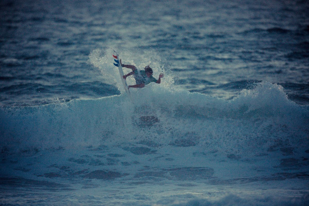 Une belle brochette de surfeurs avait fait le déplacement à Anglet pour déchirer les vagues du spot des Sables d’Or à la lumière de la lune et des spots lumineux. Côté Français, on aura retrouvé à l’eau entre autres Adrien Toyon, Tim Boal, Romain Laulhé, Maxime Huscenot, Damien Chaudoy ou encore William Alliotti, tandis qu’un paquet de surfeurs internationaux avait fait le déplacement, emmenés par l’Américain ancien membre du WCT Cory Lopez. Après les premières séries lancées à la tombée du jour, c’est donc grâce à trois énormes ballons lumineux que les surfeurs auront pu assurer le spectacle et mener la compétition jusqu’à une finale de haut niveau, tandis que le DJ So Me assurait l’ambiance musicale sur la plage.