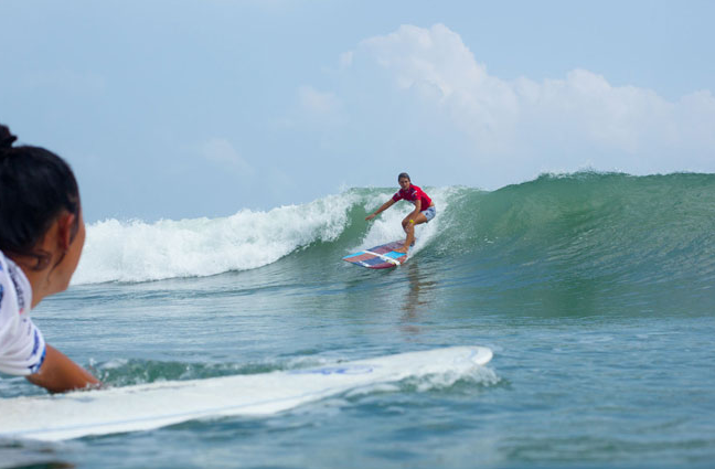 Justine Dupont et Ophélie Ah-Kouen se sont qualifiées toutes les deux pour le round 2. « J’ai remporté la manche de tout juste un point, déclare Ophélie. Maintenant que j’ai gagné je me sens bien. J’étais très nerveuse mais je suis plus confiante et compte bien faire mieux lors de ma prochaine série. C’est trop bon d’être ici en Chine, Hainan est une île magnifique et les vagues sont excellentes. »