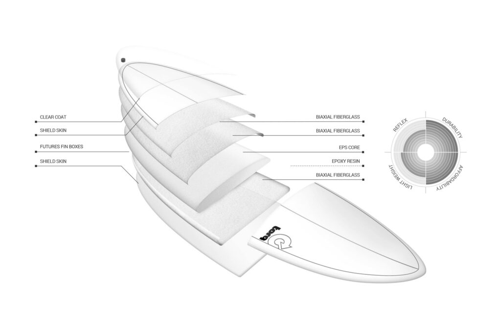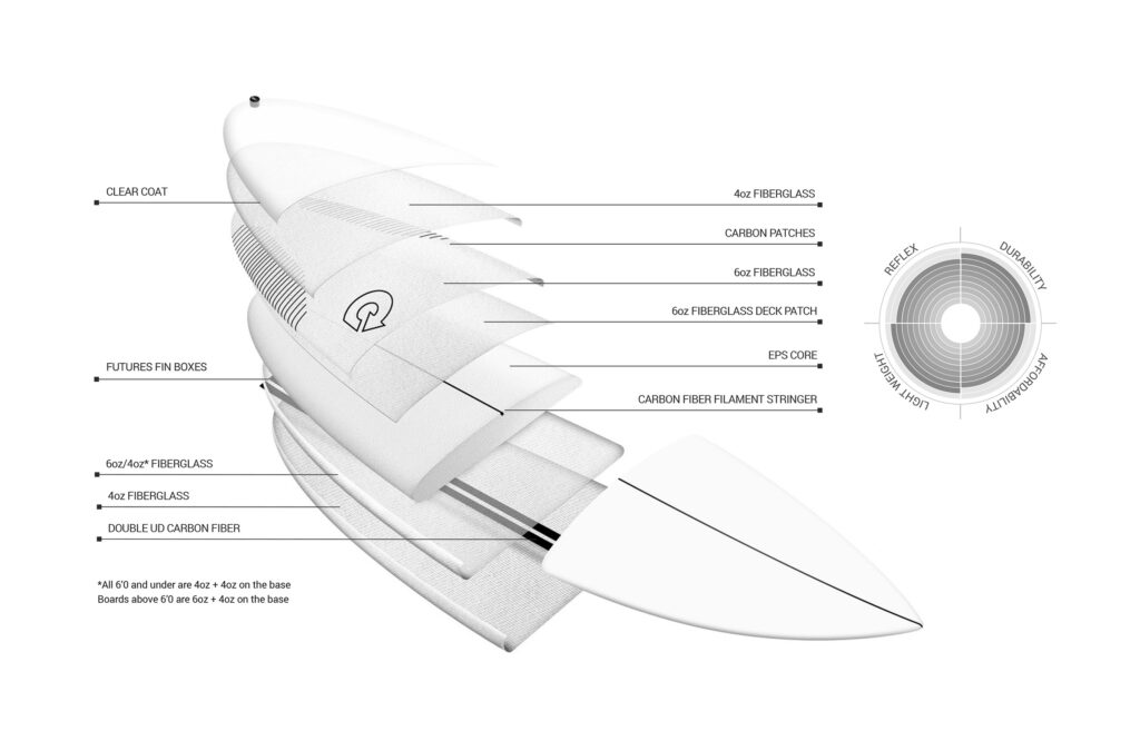 Les planches conçues selon la technologie ACT sont les premières planches de surf au monde réalisées en EPS/Epoxy pré-imprégné. Le pré-imprégné est le procédé composite le plus performant disponible sur le marché, il est notamment largement utilisé dans des industries de pointe telles que l’aéronautique et la formule 1. Il présente le meilleur rapport poids/résistance et les meilleures caractéristiques de réflexe (ressort) de tous les assemblages en fibre de verre, ainsi qu’un aspect environnemental en limitant au maximum les déchets de production.