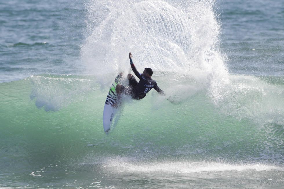 - Kelly Slater s’est fait envoyer au round 2 par Filipe Toledo tout comme Jeremy Flores. Après une faible performance à Teahupoo, le Brésilien semble en forme dans les vagues californiennes.