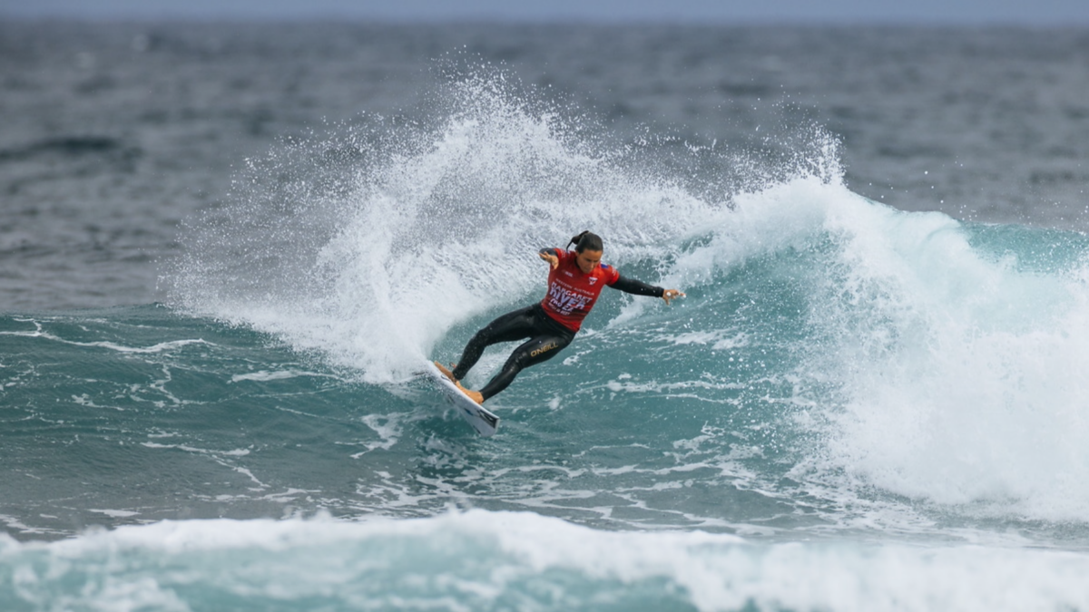 Pour cette première journée, les compétitrices se sont affrontées dans des vagues de 90cm à 1m20 sur le spot de Main Break. Les conditions difficiles et les vagues molles n’ont pas permis aux athlètes de scorer d’énormes scores.