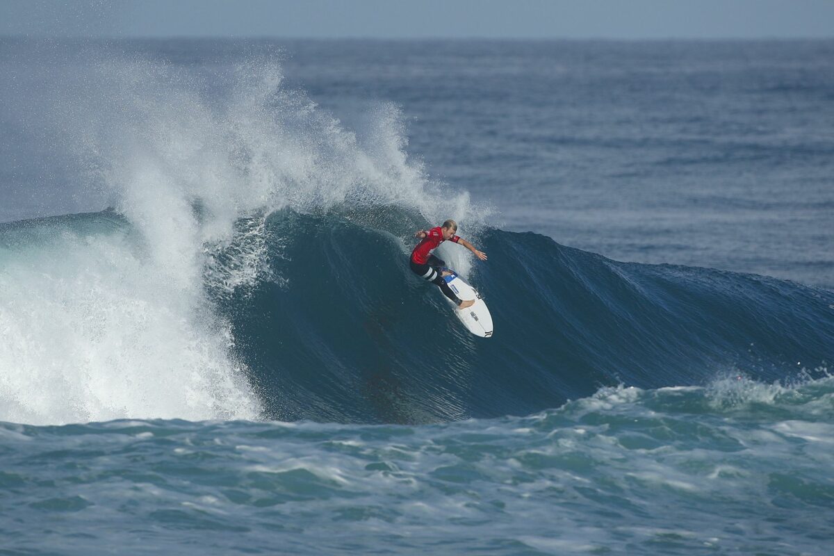 Duru frise l’exploit, Florence confirme son statut : qualifié grâce à une wildcard, décernée au Landais en sa qualité de meilleur français sur le QS ; c’est dans une série bien coriace que Joan s’est retrouvé, d’entrée de jeu. Opposé à nul autre que John John Florence, ainsi qu’à l’américain Conner Coffin, Joan a longtemps dominé sa série grâce à un surf backside puissant et engagé dans un terrain qu’il connait bien.