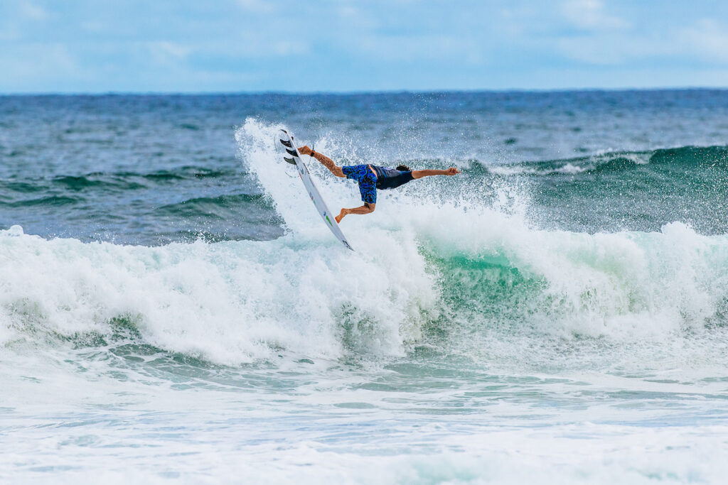 C’est le local Bryan Perez qui a lancé la révolution. Porté par le public il vole plus haut qu’Italo Ferreira, qui lui tombe bien bas après sa victoire à Tahiti.