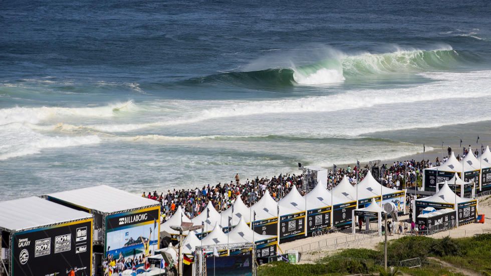 … N’oublie pas de monter là-haut » chantait Dario Moreno quelques années avant que l’Australien Peter Troy n’y introduise la première planche moderne en 1964. Le roi de l’opérette avait bien raison : l’attractivité de la ville réside davantage au sommet de ses fameux pics granitiques plutôt que dans ses spots de surf. Et les cartes postales vidéo relayées régulièrement à l’écran pour passer le message d’un ministère du tourisme carioca, principal soutien financier de cette épreuve ne trompent pas : il n’y est nullement fait mention du surf. Barra da Tijuca, beach break puissant situé au sud-ouest de Rio qui accueille le WCT depuis 2011 (de 2001 à 2010 la caravane du WCT faisait halte à Florianopolis au sud du pays) est tout sauf l’Eldorado que convoitaient les conquistadors en d’autres temps. Le filon est aussi incertain que la syntaxe d’un Ribéry même s’il recèle quelques rares pépites. Et comme pour le parcours du 11 de France qui foulera les pelouses brésiliennes dans quelques semaines lors de la Coupe du Monde de foot, mieux vaut se préparer au pire pour ne pas être déçu.