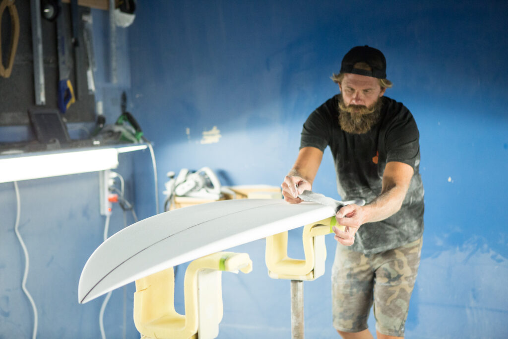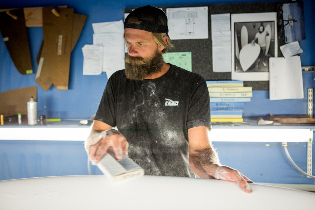 Shaper une planche à la main est la chose la plus amusante, la plus challengeante et la plus créative de mon métier et j’aime être créatif, travailler de mes mains. C’est dans les planches faites à la main que j’engage le plus mon esprit, mon cœur et mon être tout entier. Donc dès que j’en ai l’occasion, je le fais.